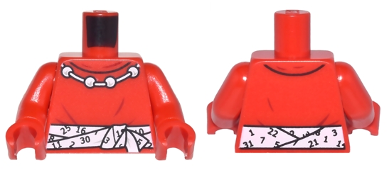 Torso Shirt with Round Collar, Necklace with 4 Beads and White Tied Belt with Calendar Numbers Pattern / Red Arms / Red Hands