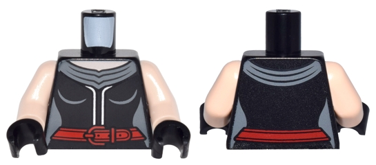 Torso Female Outline Dress with 2 Silver Vertical Lines and Red Belt with Buckle Pattern / Light Nougat Arms / Black Hands