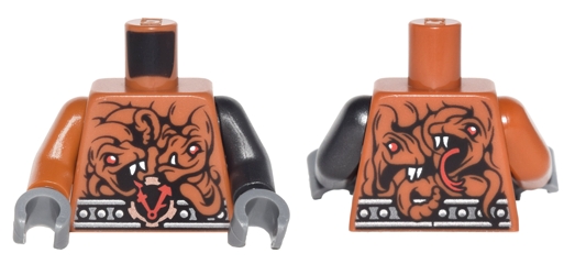 Torso Ninjago Metallic Silver Belt with Rivets, Clock and 4 Snakes Pattern / Pearl Dark Gray Arm Left / Dark Orange Arm Right / Dark Bluish Gray Hands