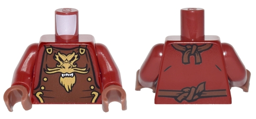 Torso Ninjago Reddish Brown Armor with Ties, Gold Buckles and Dragon Head Emblem Pattern / Dark Red Arms / Reddish Brown Hands