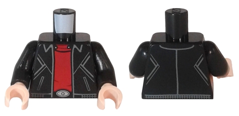 Torso Leather Jacket with Gray Stitching, Slash Pockets and Waistband over Red Shirt, Silver Oval Belt Buckle Pattern / Black Arms / Light Nougat Hands