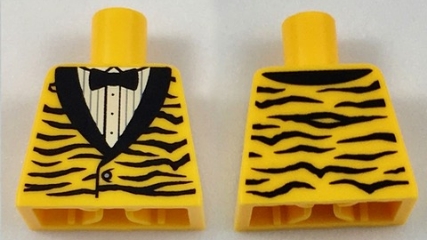 Torso Tuxedo Jacket with Black Animal Stripes and Lapels over White Shirt with Buttons and Pleats, Bow Tie Pattern