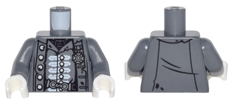 Torso PotC Naval Officer Uniform Tattered with Silver Buttons and White Trim, Belt Buckle, Service Medal Pattern / Dark Bluish Gray Arms / White Hands