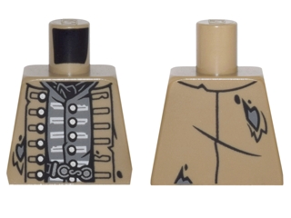 Torso PotC Naval Officer Uniform Tattered with Silver Buttons and White Trim, Dark Bluish Gray Vest, Belt Buckle Pattern