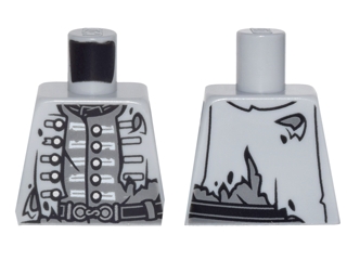 Torso PotC Naval Officer Uniform Tattered with Silver Buttons, Torn Halfway on One Side, Belt Buckle Pattern