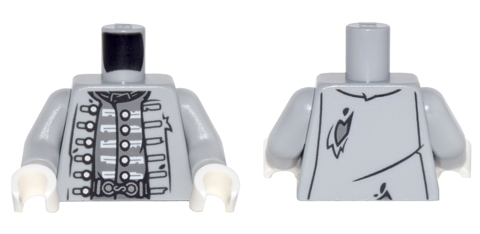 Torso PotC Naval Officer Uniform Tattered with Silver Buttons and White Trim, Vest, Belt Buckle Pattern / Light Bluish Gray Arms / White Hands