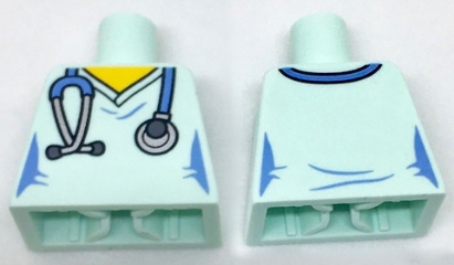 Torso Female Hospital Scrubs with Medium Blue Stethoscope Pattern