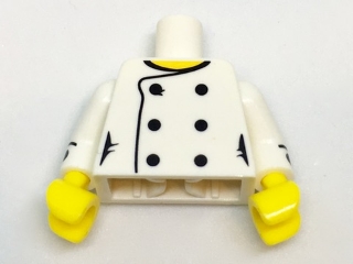 Torso Female Chef with 6 Black Buttons and Yellow Neck Pattern / White Arms with Black Cuffs and Buttons Pattern / Yellow Hands