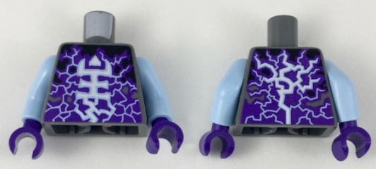 Torso White and Bright Light Blue Rogul Symbol and Lightning over Dark Purple and Black Pattern / Bright Light Blue Arms / Dark Purple Hands
