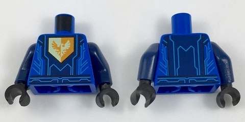 Torso Nexo Knights Armor with Blue Circuitry, Dark Blue Center Panel, Falcon Symbol on Pentagonal Shield Pattern / Dark Blue Arms / Black Hands