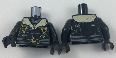 Torso Bomber Jacket with Tan Fur Collar, Straps and Gold Clasps Pattern / Black Arms / Black Hands