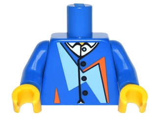 Torso Jacket with Dark Blue Buttons, Bright Light Blue and Orange Geometric Shapes over White Shirt with Collar Pattern / Blue Arms / Yellow Hands