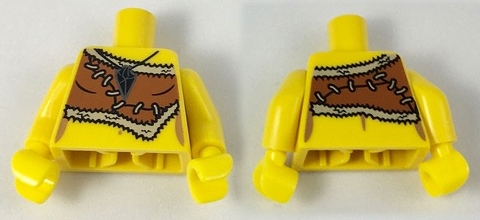 Torso Female Dark Orange Animal Skin Top with Black and Silver Amulet Pattern / Yellow Arms / Yellow Hands