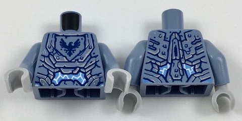 Torso Nexo Knights Armor Stone with Dark Blue Falcon in Pentagonal Shield and White Lightning Pattern / Sand Blue Arms / Light Bluish Gray Hands