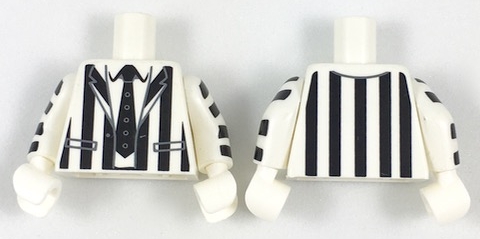 Torso Suit Jacket with Black Vertical Stripes Thick and Black Tie Pattern / White Arms with Black Stripes Pattern / White Hands