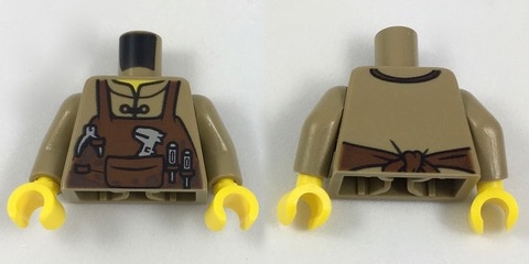 Torso Shirt with Reddish Brown Apron with Pocket and Loops and Light Bluish Gray Tools Pattern / Dark Tan Arms / Yellow Hands