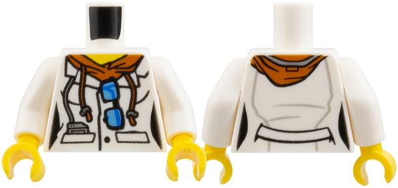 Torso Lab Coat Female with Dark Orange Hoodie and Sunglasses Pattern / White Arms / Yellow Hands