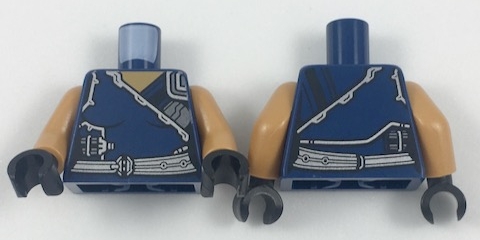 Torso Female Outline with Tunic with Silver Trim and Belt Pattern / Medium Nougat Arms / Black Hands