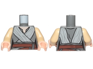 Torso SW Female Outline, Open Neck Shirt, Light Bluish Gray Tied Robe, Reddish Brown Belt Pattern / Tan Arms / Light Nougat Hands
