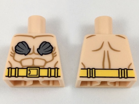 Torso Male Bare Chest with Flat Silver Seashells, Yellow Utility Belt Pattern