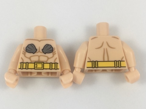 Torso Male Bare Chest with Flat Silver Seashells, Yellow Utility Belt Pattern / Light Nougat Arms / Light Nougat Hands