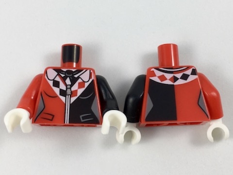 Torso Batman Female Outline with Black Scarf and Side Panel, White Collar with Diamonds Pattern / Black Arm Left / Red Arm Right / White Hands