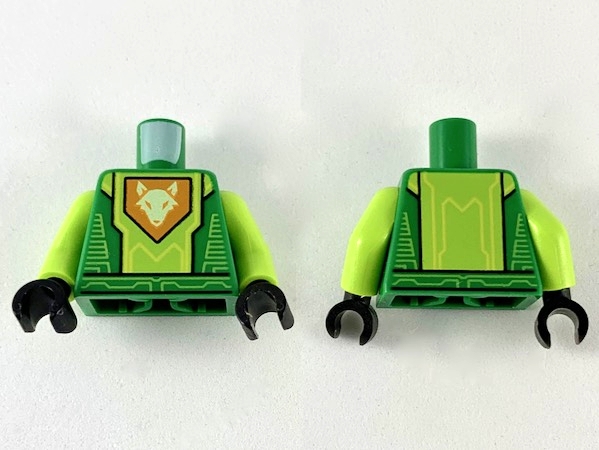 Torso Nexo Knights Armor with Lime Circuitry and Panel with Bright Light Yellow Fox Head on Orange Pentagonal Shield Pattern / Lime Arms / Black Hands