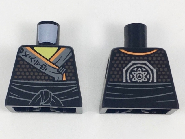 Torso Tunic with Sash, Yellow Neck, Orange and Dark Gray Hems, Dark Tan Dots Pattern