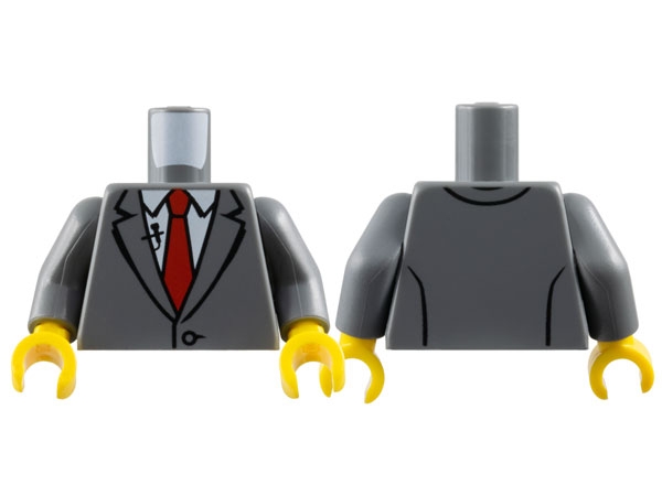 Torso Suit Jacket with Button and Lapels over White Shirt and Red Tie, Black Microphone Pattern / Dark Bluish Gray Arms / Yellow Hands
