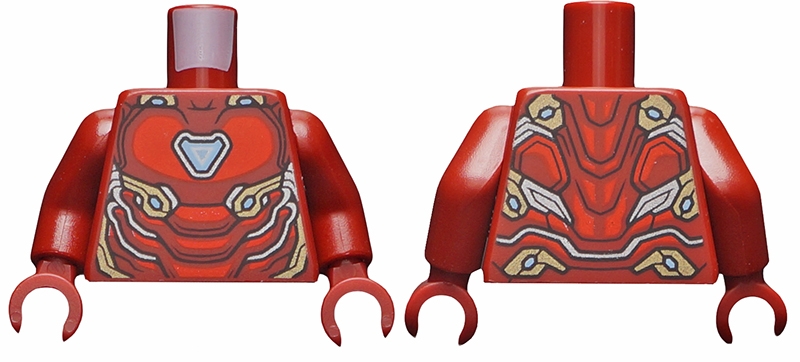Torso Armor with Bright Light Blue Triangle Arc Reactor, Red Panels, Gold and Silver Trim Pattern (Iron Man Mark 50) / Dark Red Arms / Dark Red Hands