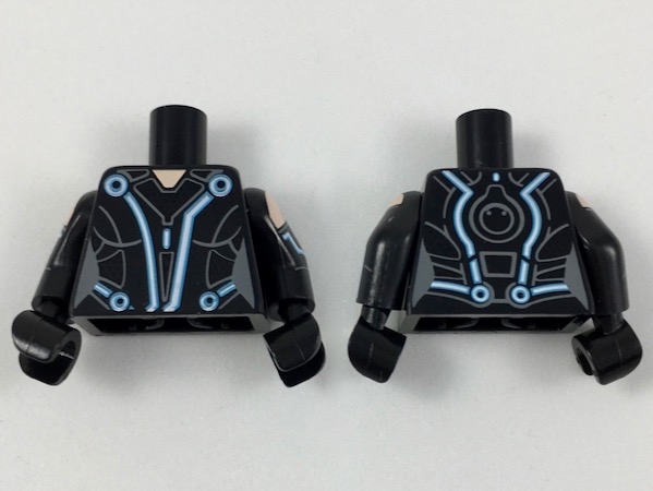 Torso Female with White/Blue Curved Lines and Dark Bluish Gray Markings Pattern / Black Arms with Light Nougat Shoulder and Blue Line Pattern / Black Hands