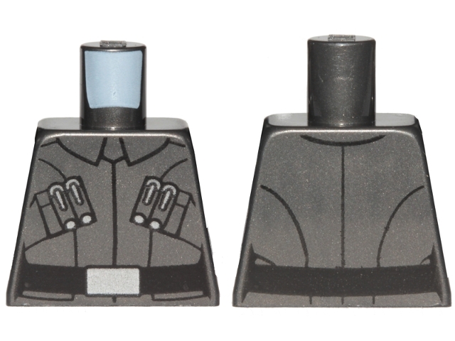 Torso SW First Order Officer Male Uniform Shirt with Collar, Silver Code Cylinders, Black Belt with Narrow Buckle Pattern