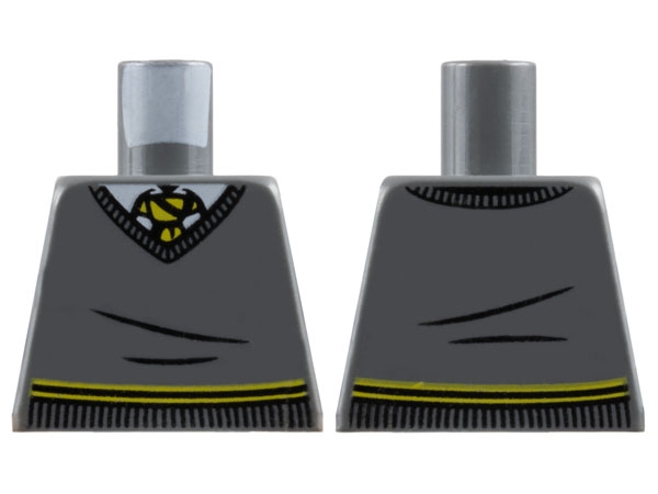 Torso V-Neck Sweater with Waistband over White Shirt with Collar, Yellow and Black Tie Pattern
