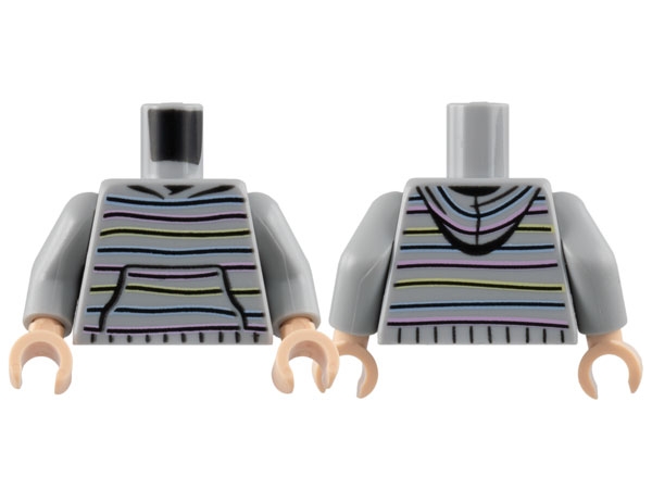 Torso Hoodie with Bright Light Yellow, Bright Pink, and Bright Light Blue Horizontal Stripes, Wide Front Pocket Pattern / Light Bluish Gray Arms / Light Nougat Hands