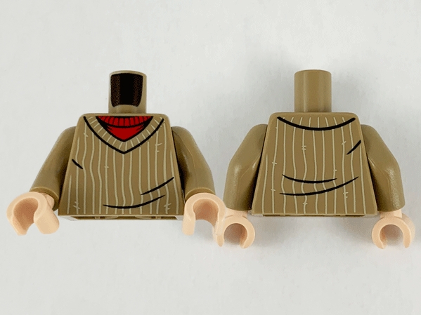 Torso Sweater with Vertical White Stripes over Red Undershirt Pattern / Dark Tan Arms / Light Nougat Hands