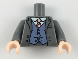Torso Jacket, White Shirt, Red Tie with White Spots, Sand Blue Vest Pattern / Dark Bluish Gray Arms / Light Nougat Hands