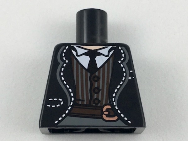 Torso Jacket with White Stitching, White Shirt, Black Tie, Dark Brown Striped Vest and Belt Pattern