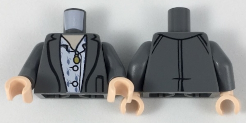 Torso Jacket with White Shirt and Gold Pendant Pattern / Dark Bluish Gray Arms / Light Nougat Hands