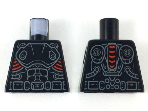Torso Armor with Dark Bluish Gray Gear and Belt Outlines, Red Curves at Sides Pattern