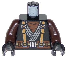 Torso Ninjago Robe with Suspenders and Wide Belt, Dragon Logo on Back Pattern / Dark Brown Arms / Black Hands