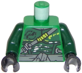 Torso Ninjago Armor with Sash, Straps and Pouches Pattern / Dark Green Arms / Black Hands