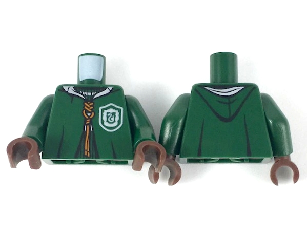 Torso Hooded Robe over Sweater, White Collar, Dark Orange Laces, Slytherin Crest Pattern / Dark Green Arms / Dark Brown Hands