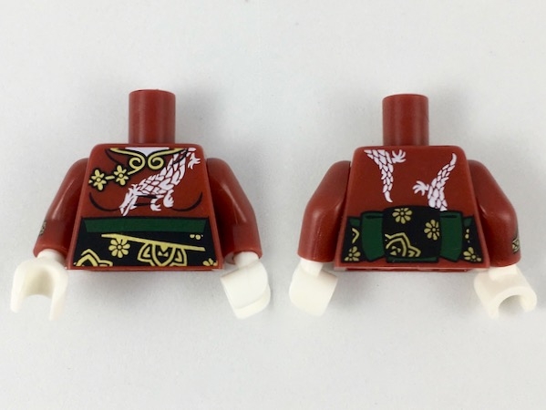 Torso Kimono Robe with White Dragon and Gold Trim, Black and Dark Green Obi Sash Pattern / Dark Red Arm Left / Dark Red Arm Right with Gold Bracelet with Red Stone Pattern / White Hands