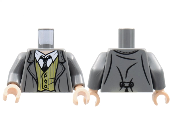 Torso Harry Potter Jacket with Olive Green Vest with Pinstripes, White Shirt with Collar, and Tie Pattern / Dark Bluish Gray Arms / Light Nougat Hands