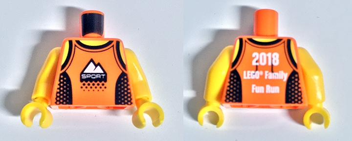Torso Tank Top with Black Straps and Side Panels, White Mountains and 'SPORT' Logo on Front, '2018 LEGO Family Fun Run' on Back Pattern / Yellow Arms / Yellow Hands