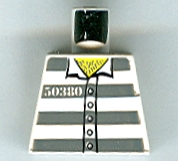 Torso Prison Uniform Shirt with '50380', 5 Buttons, and Dark Bluish Gray Stripes, Hairy Chest, Yellow Neck Pattern
