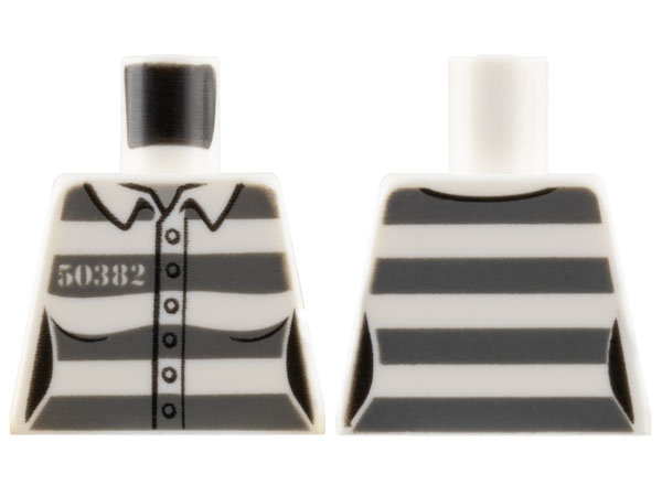 Torso Town Prisoner Female, Number 50382, Dark Bluish Gray Stripes, 6 Buttons Pattern