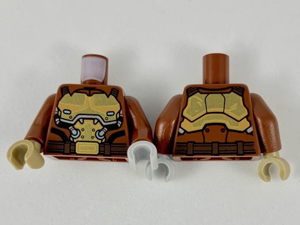 Torso Shirt with Collar, Gold Breastplate with Silver Tubes Pattern / Reddish Brown Arms / Light Bluish Gray Hand Left / Dark Tan Hand Right