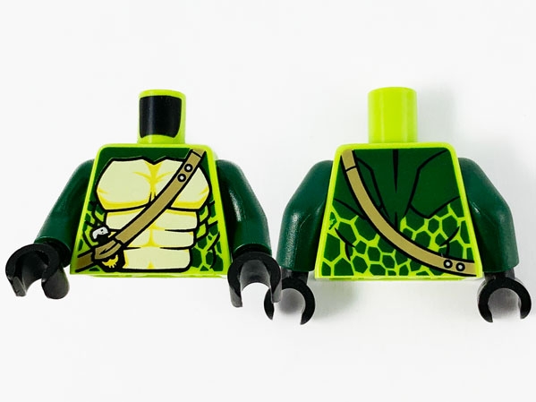Torso Ninjago Snake with Dark Tan Shoulder Belt and Green and Tan Scales Pattern / Dark Green Arms / Black Hands (Spitta)