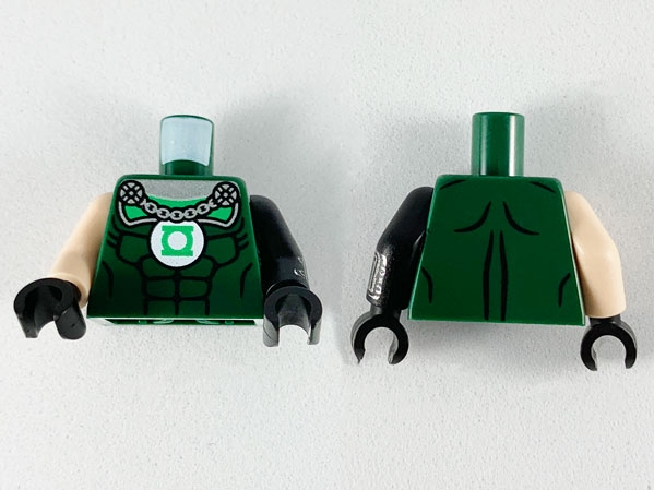 Torso Muscles Outline, Green Lantern Logo, Silver Chain Pattern / Black Arm Left with Silver Cuff Pattern / Light Nougat Arm Right / Black Hands